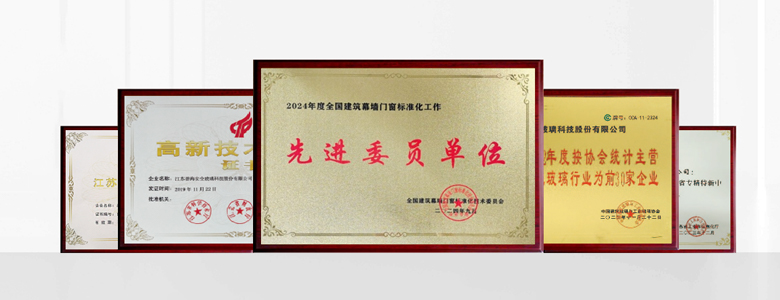 被評(píng)為A級(jí)納稅誠(chéng)信企業(yè)、江蘇省企業(yè)技術(shù)中心、AAA級(jí)重合同守信用企業(yè)、中國(guó)建筑玻璃與工業(yè)協(xié)會(huì)常務(wù)理事