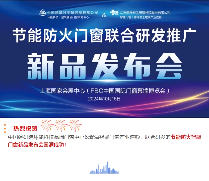 熱烈祝賀中國建研院環(huán)能科技幕墻門窗中心&碧海智能門窗產(chǎn)業(yè)連鎖聯(lián)合研發(fā)的節(jié)能防火智能門窗新品發(fā)布會圓滿成功!