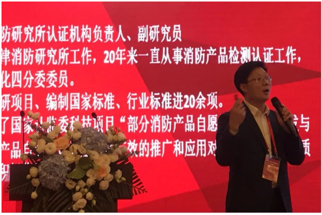 應急管理部天津消防研究所認證機構負責人、副研究員胡群明發(fā)表演講--《防火玻璃及防火(耐火型)門窗認證》