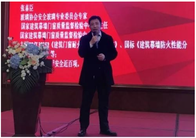 玻璃協(xié)會安全玻璃專業(yè)委員會專家,國家建筑幕墻門窗質量監(jiān)督檢驗中心副主任,國家建筑幕墻門窗質量監(jiān)督檢驗中心總工張喜臣發(fā)表演講--《建筑門窗耐火完整性試驗方法》